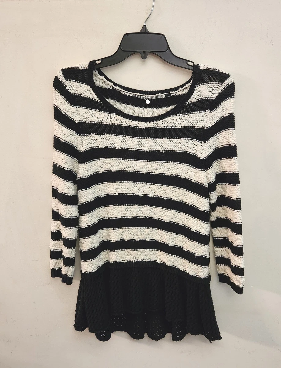 Anthropologie Knitted Amp Knotted Sweater Sz Small Striped Crocheted Hem Slub Knit Ebay
